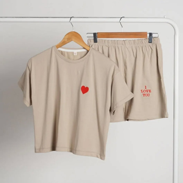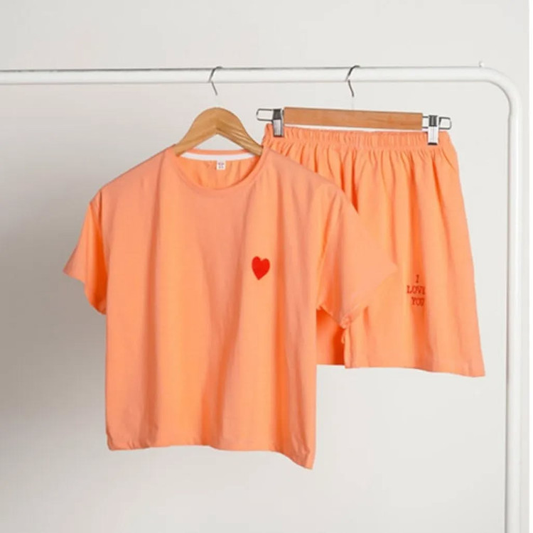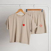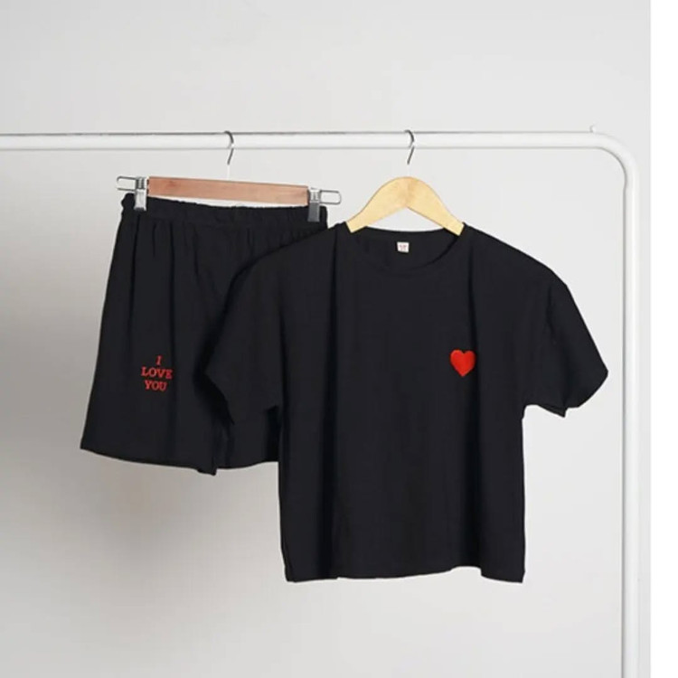 تیشرت شورتک گلدوزی طرح قلب نخ پنبه