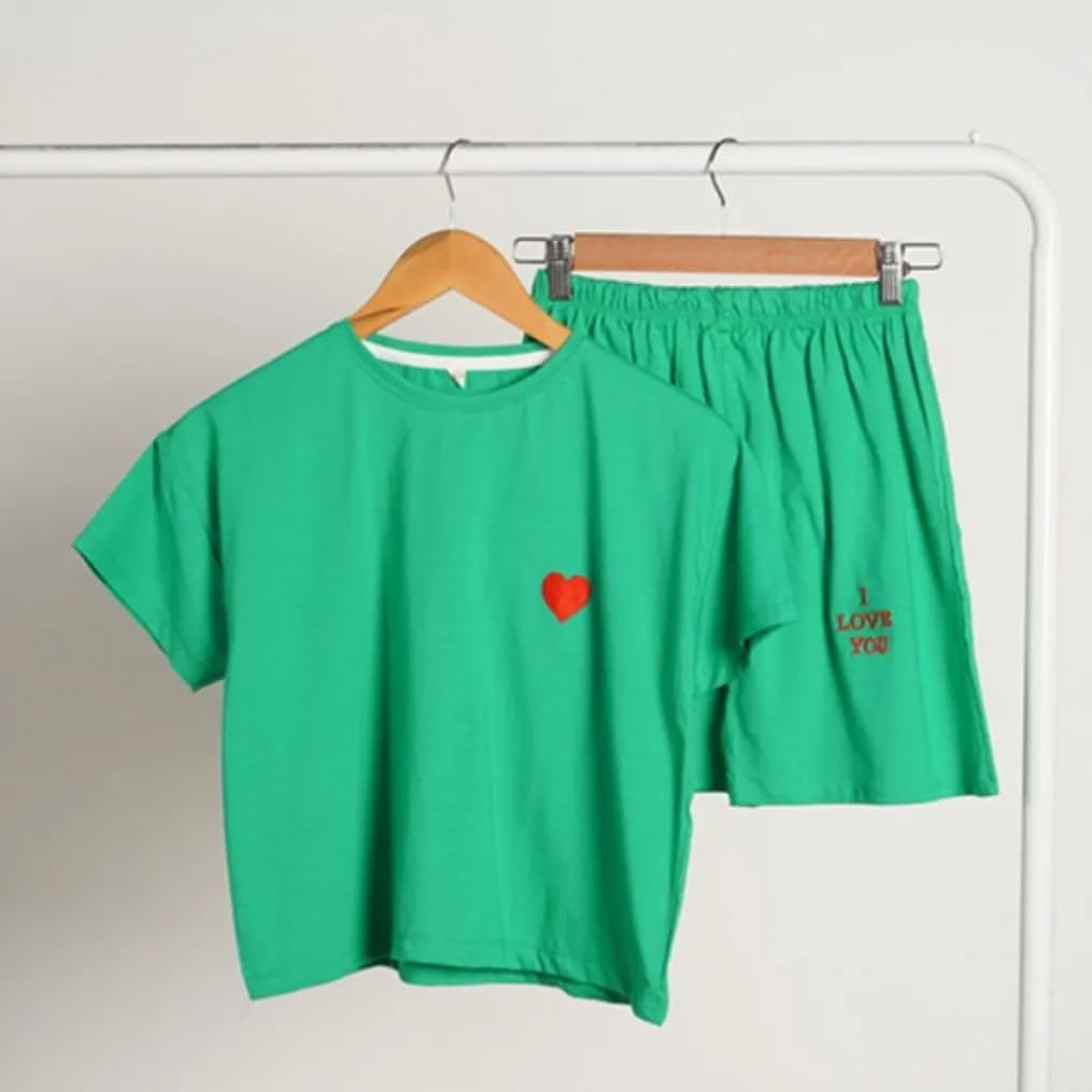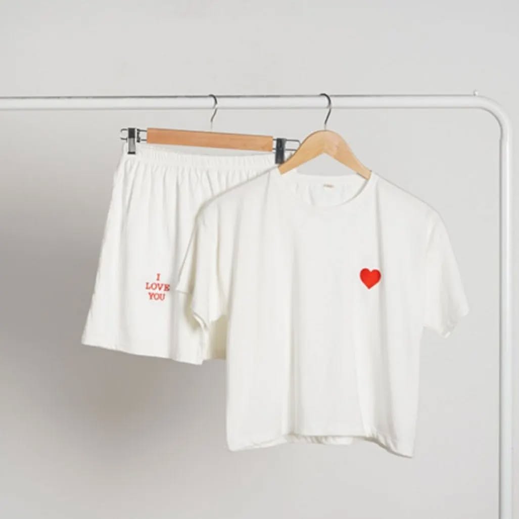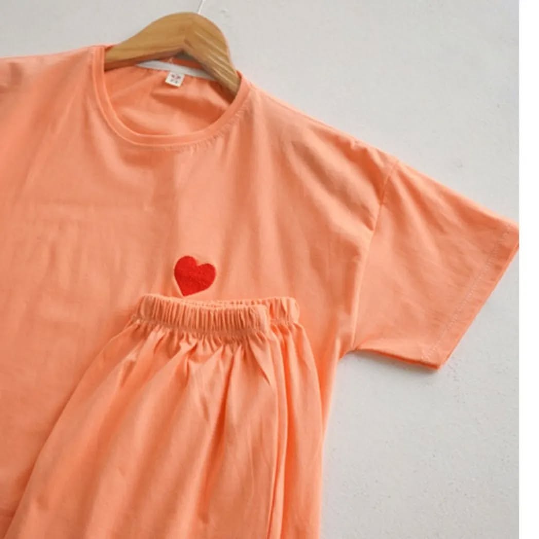 تیشرت شورتک گلدوزی طرح قلب نخ پنبه