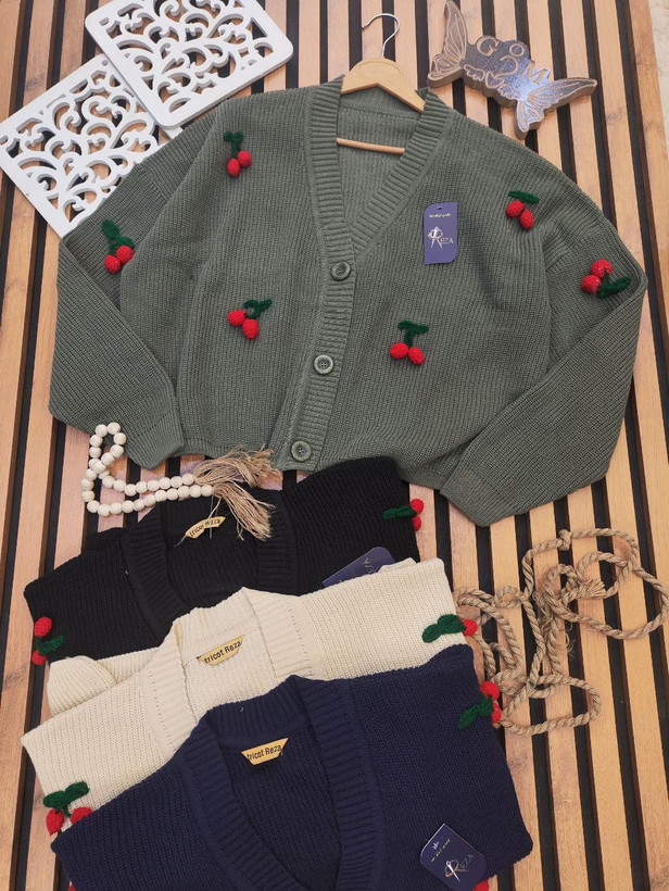 ژاکت بافت پینترستی گیلاسی قلاب بافی