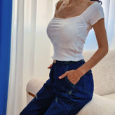 کراپ کشبافت پنبه ای مدل یقه قایقی